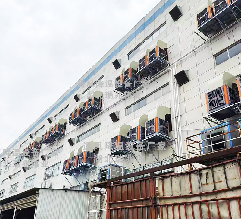 由于家具厂车间面积一般比较大,蒸发式冷气机排风力度和送风距离有限,还得安装