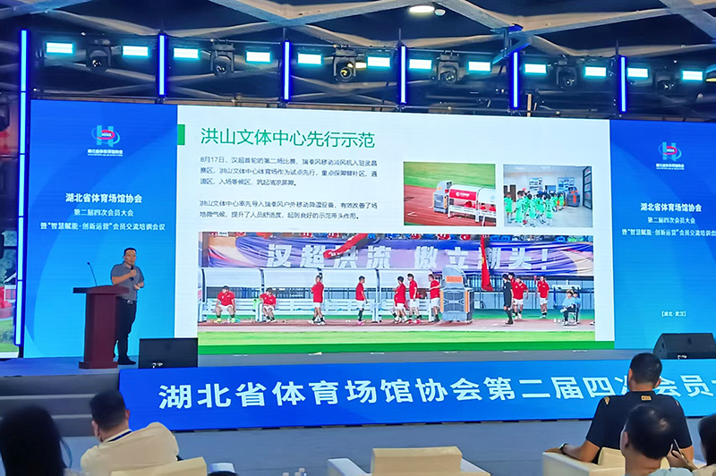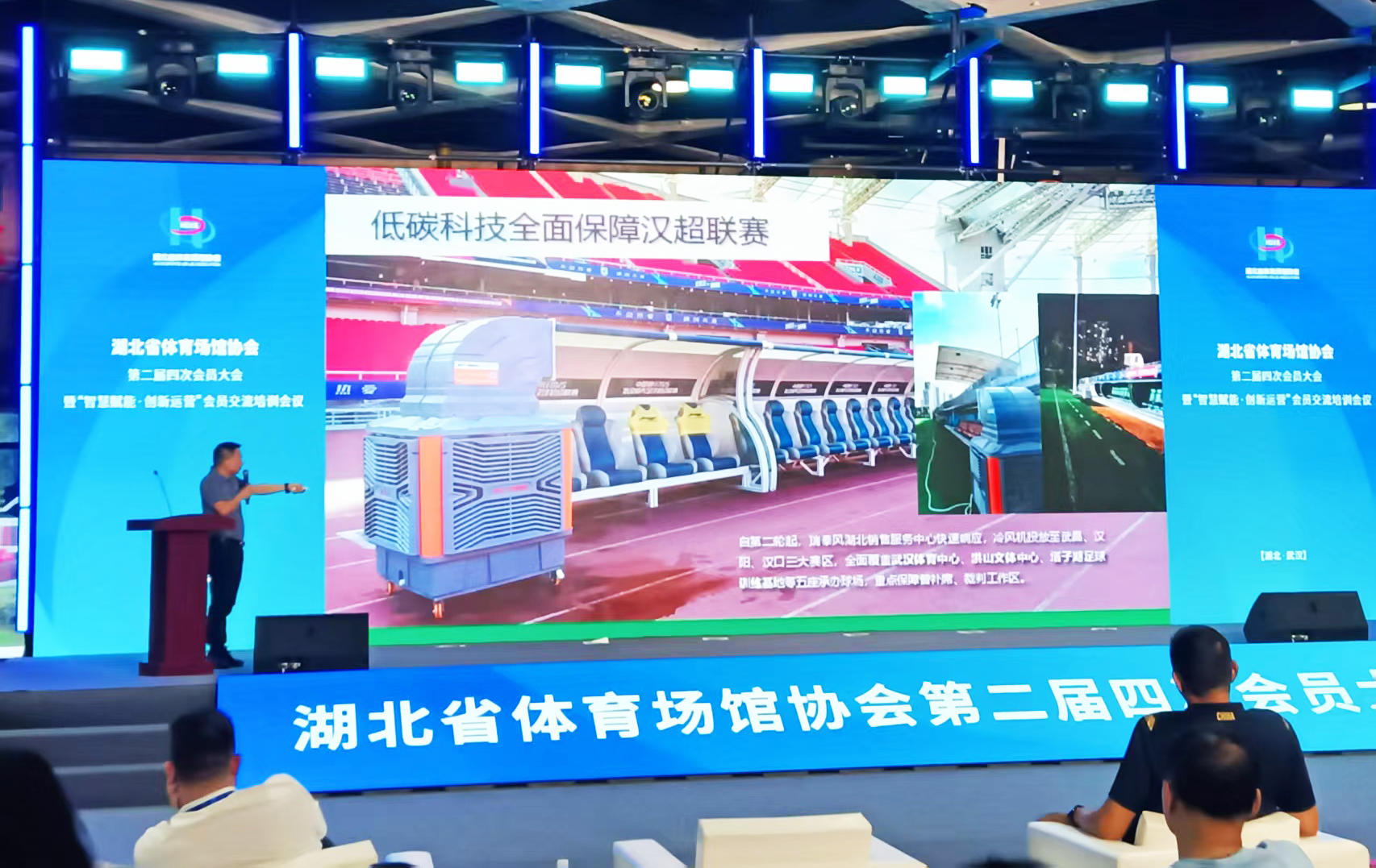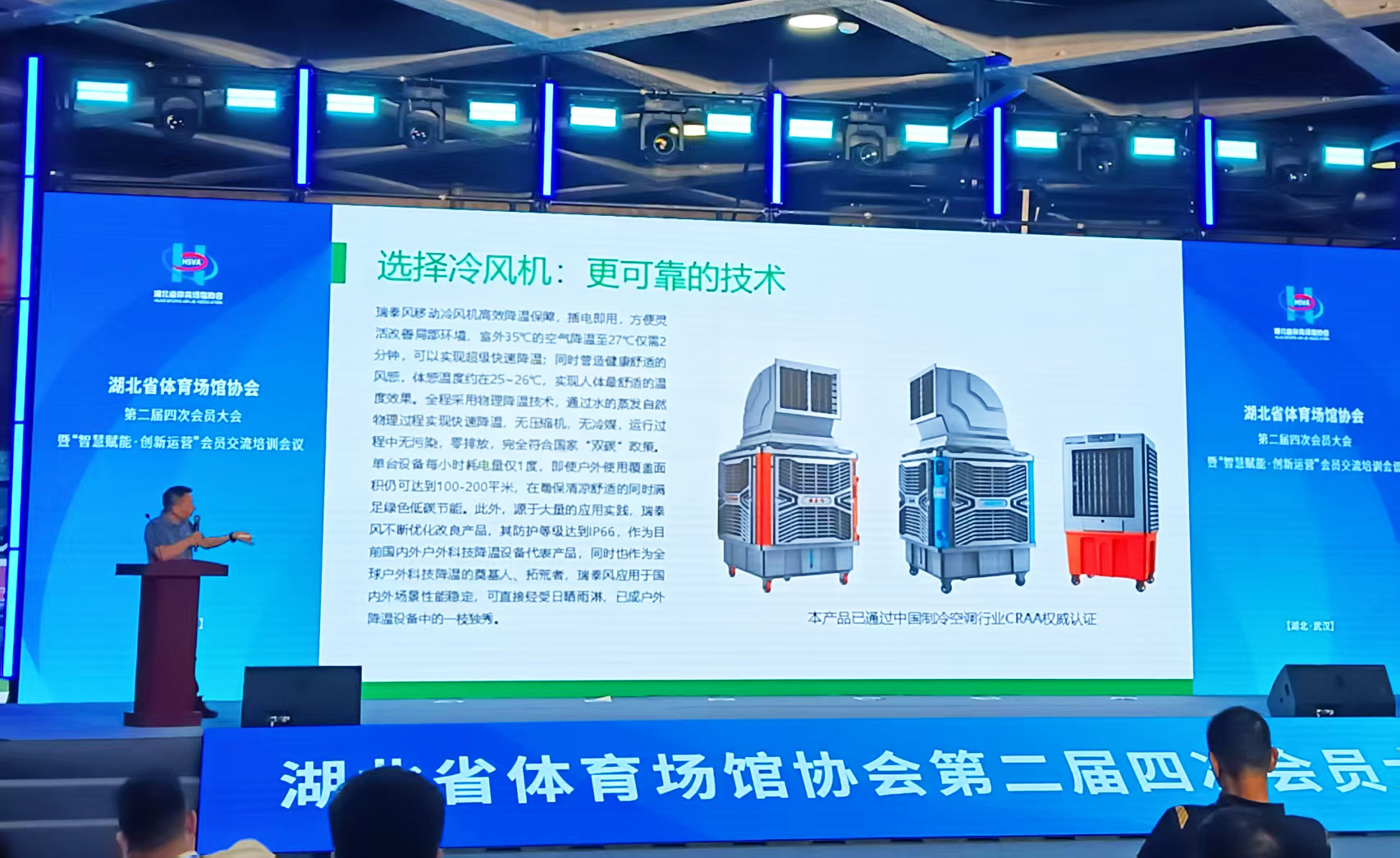 瑞泰风移动冷风机的生产厂家,瑞泰风受邀以分享嘉宾的身份,在现场面向全体参会嘉宾做了场馆应用创新主题案例的精彩分享,赢得了全场好评,与行业同仁共话体育场馆运营创新与发展。瑞泰风市场营销部总经理黄剑,重点分享了瑞泰风在汉超联赛中的降温保障经验。
