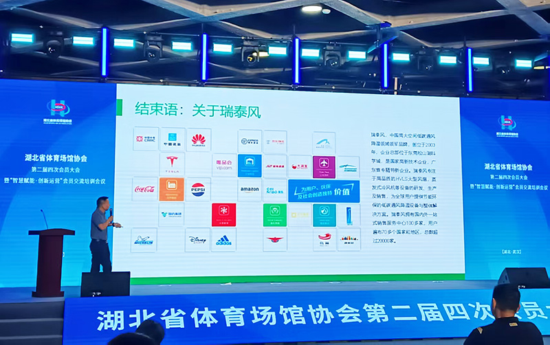 最后的总结语中,黄总介绍了“瑞泰风”的品牌发展和广阔应用前景。“瑞泰风”作为中国高大空间低碳通风降温领域领军品牌,创立于2003年,企业总部位于东莞松山湖科学城,是国家高新技术企业,广东省专精特新企业,瑞泰风专注于高品质的HVLS大型风扇,