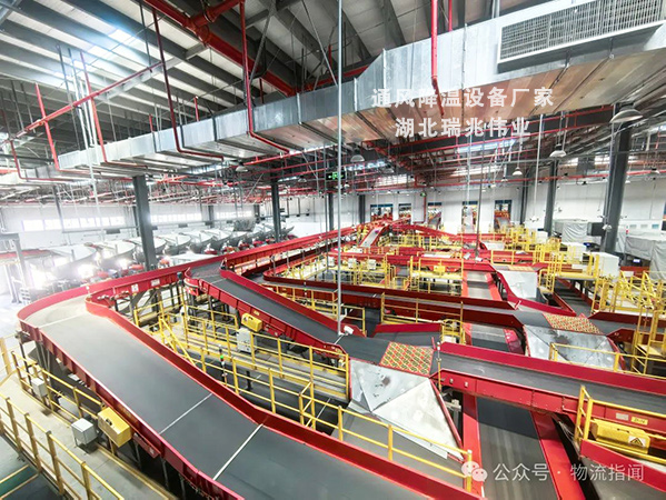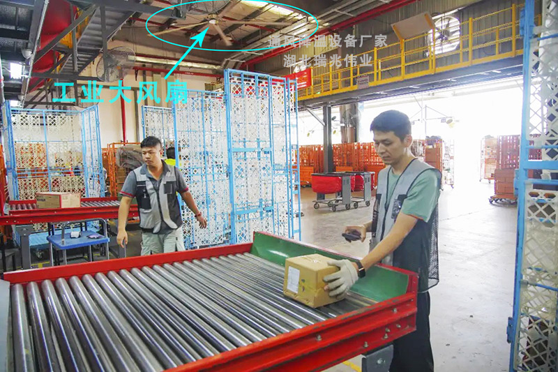 由于业务量大,顺丰快运的各个电商仓储分拣中心、物流转运中心都是高大型的构结构厂房,因此面积都比较大,加上里面大型的分拣设备、储存的物品,整个空间是非常密集的,一般的通风降温设备,在这个密集的空间里可能都无法摆放。好在顺丰速运选择了我们的瑞泰风工业大风扇,它安装于高空,不占用一点地面空间,并且它的风量大,一台