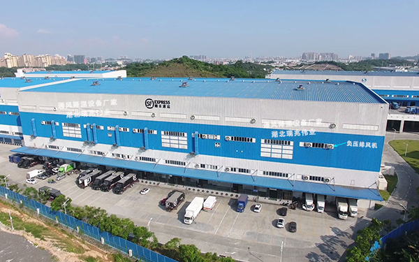 瑞泰风工业大风扇,送风量为每分钟15500立方米,横扫1600平方的送风面积,这种大面积的通风降温型大风扇,就很好了满足了顺丰速运这类密集型的仓储物流中心的需求。
