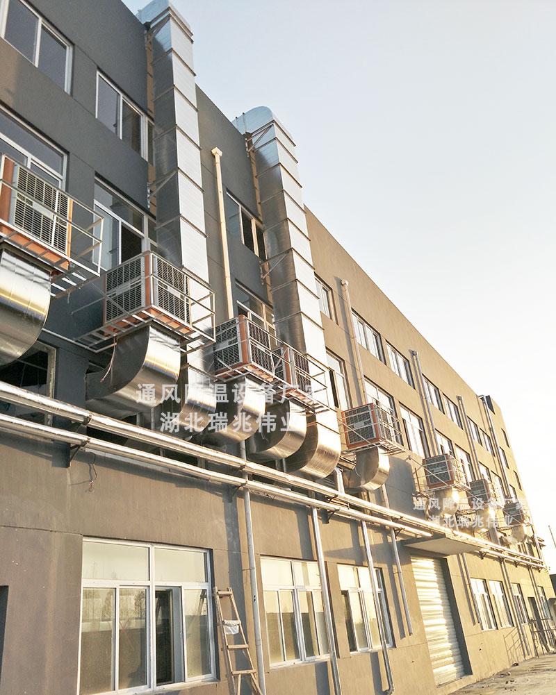 很快,我们的销售工程师设计了两种通风降温方案供客户选择。客户在结合车间实际需求和投资预算成本综合考虑之后,先择了其中一种“岗位通风降温”的方案,对两个车间进行通风降温改善。本次项目共设计了12台RTF25型瑞泰风蒸发式冷气机,配装304不锈钢送风管道,对卤制车间、油炸车间有人员工作的岗位区域进行送风降温。为了防生锈,更是为了保证车间生产食品的安全卫生,本次通风管道全部采用304不锈钢材质,好标准、高要求、精益求精,密益加密。
